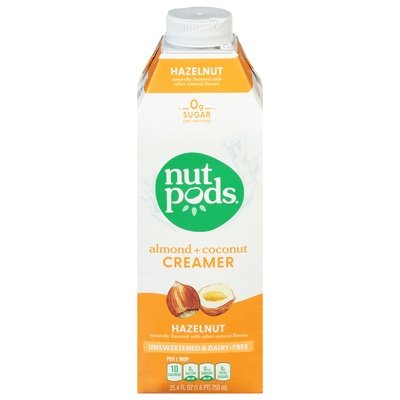 PRODUCT DETAILS: Naturally flavored with other natural flavors. 0 g sugar per serving. Per 1 Tbsp: 10 calories; 0 g sat fat (0% DV). 0 mg sodium (0% DV); 0 g total sugars. Unsweetened & dairy-free. Certified gluten free. Vegan. Keto friendly. Paleo friendly. Carrageenan-free. Non-GMO Project verified. nongmoproject.org. Plant pack. Rethink your coffee ritual. nutpods was born out of my personal search for a dairy-free creamer that still had the rich taste and consistency of half and half without the unnecessary additives or added sugars. Creating nutpods was one small change that made my life better. I'm so proud that you can now enjoy your favorite cup of coffee or tea exactly as you like it. Happy sipping, - Madeline, mom and founder. Plant-based. Smooth. Balanced. Delicious. Whole 30 Approved. nutpods.com/hello. Facebook. Instagram. Twitter. (at)nutpods. We would love to hear from you! nutpods.com/hello. SIG combidome. Please recycle. FSC: Mix - Board.