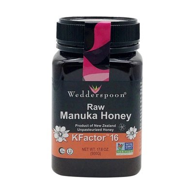 PRODUCT DETAILS: Halal. Non-GMO Project verified. nongmoproject.org. Produced by bees feeding on the nectar of the Manuka bush found on New Zealand's North and South islands, Manuka Honey is one of the nature's most complex creations. Wedderspoon is committed to providing the highest quality Manuka Honey. All of our KFactor Manuka Honeys are: Raw and unpasteurized; free of antibiotics and glyphosate; traceable from hive to home. Unpasteurized honey. Glyphosphate residue free. detoxproject.org. Wedderspoon KFactor 16 is guaranteed to meet or exceed the Monofloral Manuka Standard set by the Government of New Zealand. We are dedicated to traceability and authenticity, from the hive to the home. Manuka kind of life. NewZealand.com. Licence No. 100151. Glyphosate: Residue free. detoxproject.org. newzealand.com. detoxproject.org. (877) 296-8403. Product of New Zealand. Produced and packed in New Zealand.