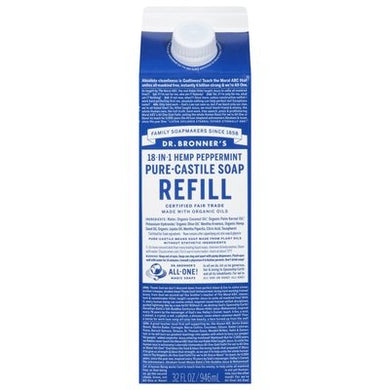 Dr Bronners Soap Pure-Castile 18-In-1 Hemp Peppermint Refill Og3 1/32 OZ [UNFI-CARLISLE #3004413] T