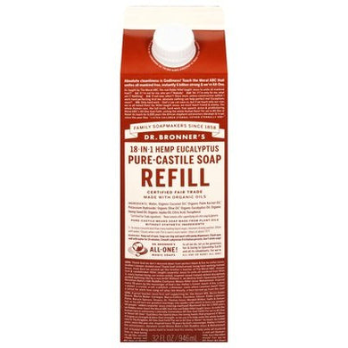 Dr Bronners Soap Pure-Castile Hemp Eucalyptus 18-In-1 Refill Og3 1/32 OZ [UNFI-CARLISLE #3004397] T
