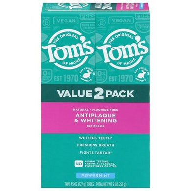 Toms Of Maine Antiplaque & Whitening Toothpaste Peppermint Value 2 Pack 1/9 OZ [UNFI-CARLISLE #3037736] T