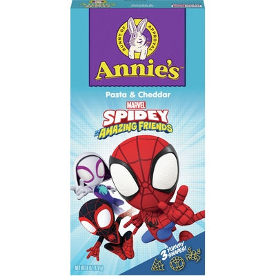 PRODUCT DETAILS: Whole Grain: 8 g or more per serving. Eat 48 g or more of whole grains daily. WholeGrainsCouncil.org. Certified Organic by Oregon Tilth. Bunny of Approval. 3 yummy shapes! Go webs go! Help Spidey, Miles and Ghost Spider chase through their webs, finding the path that lets them collect the most spider icons while avoiding the villains. Ghost Spider start. Spidey start. Finish. Miles start. Annies.com. MarvelCheck.com. how2recycle.info. Learn more at MarvelCheck.com. We love to hear your feedback! Contact us at Annies.com or 1-800-288-1089 and reference the best If used by date. Box Tops for Education: Download the app. Scan your receipt. Earn cash for schools. We Reduce Our Bunny Footprint By Using: Minimum 35% post-consumer content. Certified: 100% Recycled Paperboard.